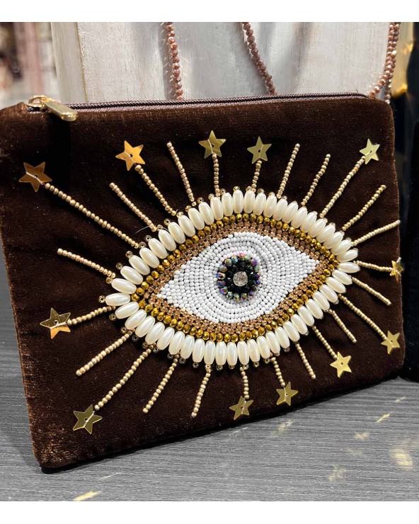 Pochette Velours Brodée Oeil Protecteur – 17 x 13cm