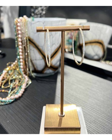 Très belles créoles en laiton de haute qualité, ces boucles d'oreilles comportent des oxydes de zirconium qui leur offre une brillance et des reflets qui séduiront à coup sûr vos clientes pour la revente de vos bijoux fantaisie.