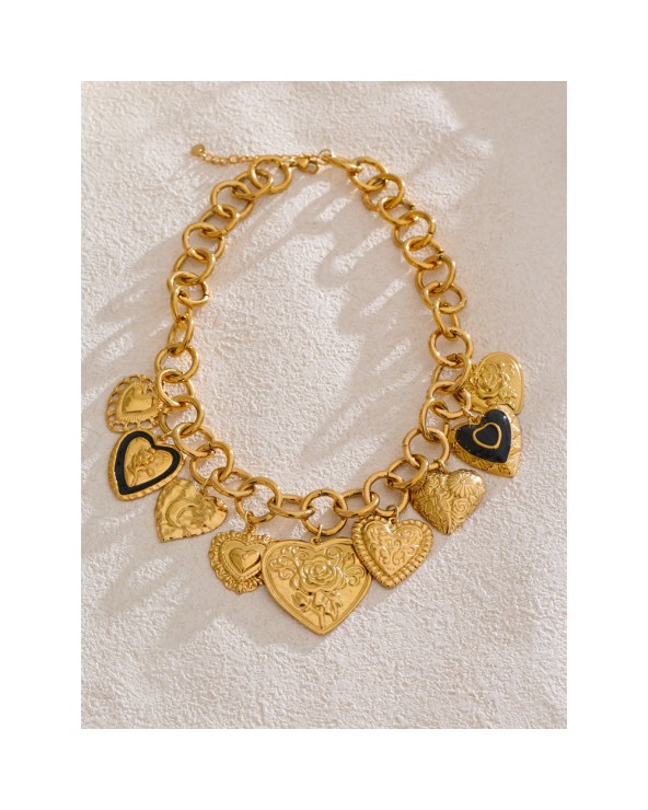 Collier Charms Coeurs Multi Doré - Acier Inoxydable 316L.✨