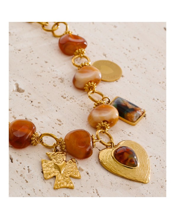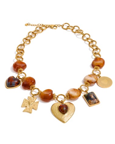 Collier Maïssa avec pierres naturelles en acier chirurgical classique ou doré à l'or fin 18k ✨ ACIER INOXYDABLE  - Résiste à l'eau et préserve...