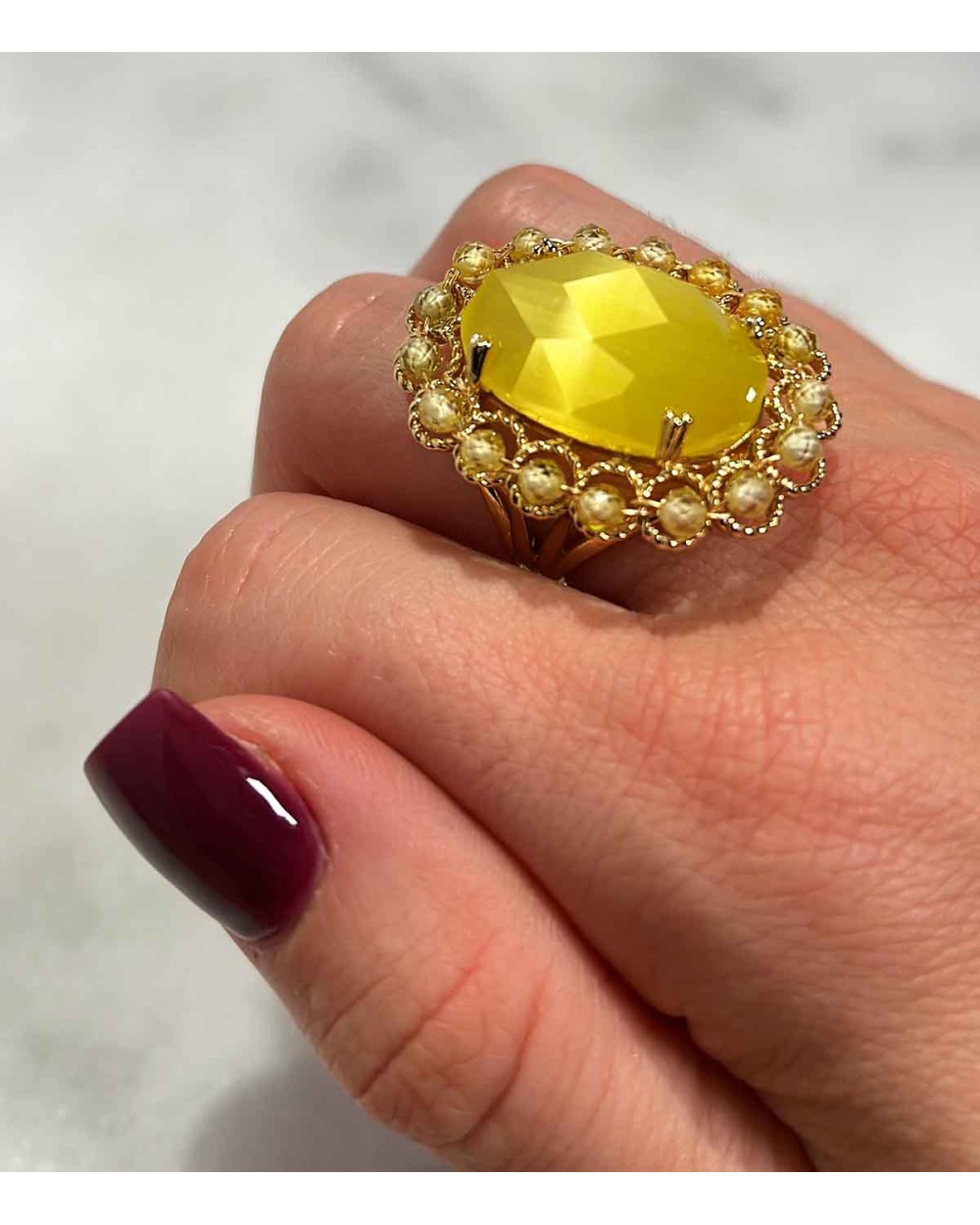 Bague ajustable Oeil de Chat en pierres naturelles et laiton 14K de haute qualité